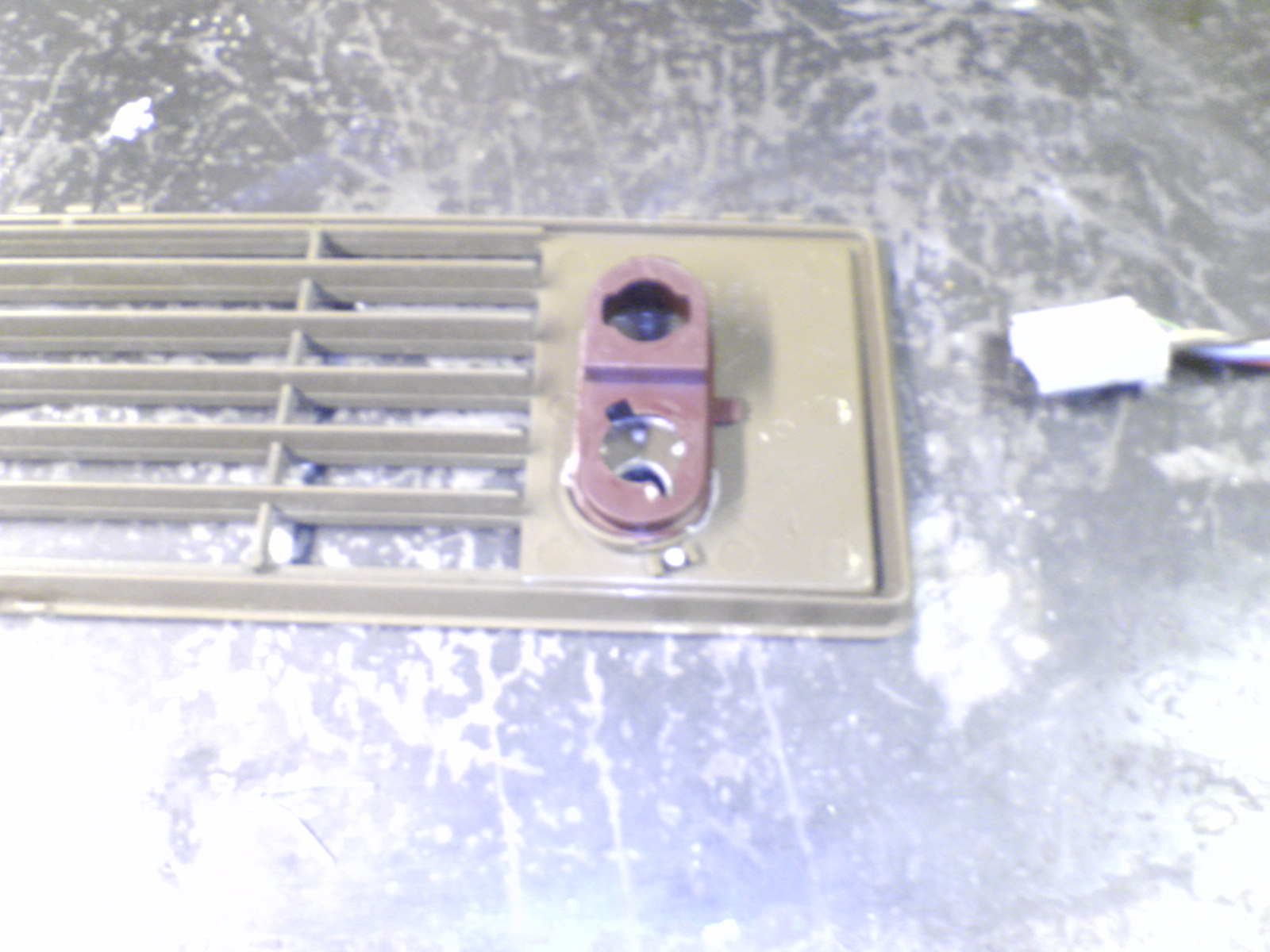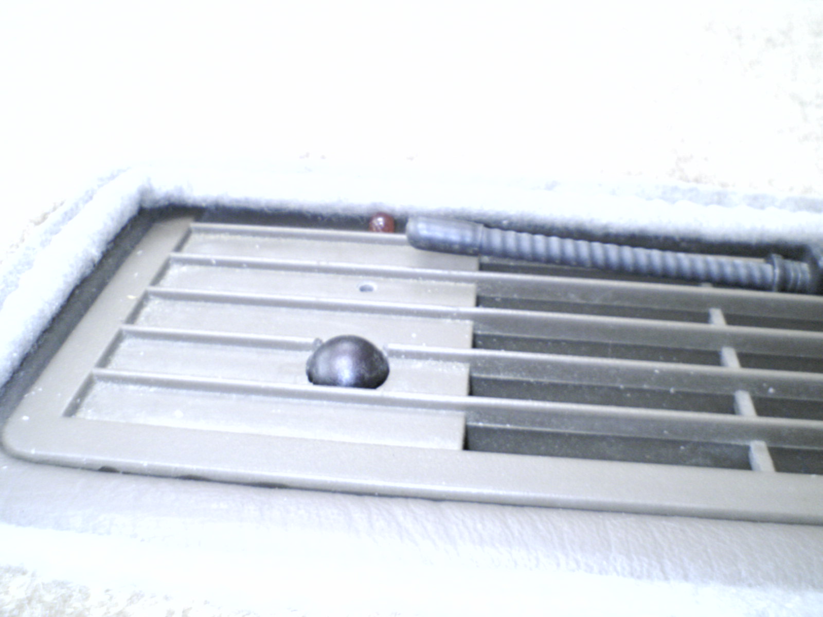 Grind away part of the plastic ring on the Caprice grille so the pocket will fit flush then match drill a 1/2" hole so the climate control sensor will fit thru the opening then bond the pocket to the grille. I used a fast set epoxy and tossed it in the oven of a 1/2 hour. I went ahead and installed the sunload sensor in the grille and then pushed the sentinel sensor up thru the dash and attach it to the grille and snap the grille back in place. Once you got your hand out of the way then slip the control module around the backside of the metal dash bracket and position it between the bracket and the black plastic part of the dash, you will see the space. I used a 1" square piece of velcro to stick it to the side of the plastic. Now its secure plus it won't rattle.